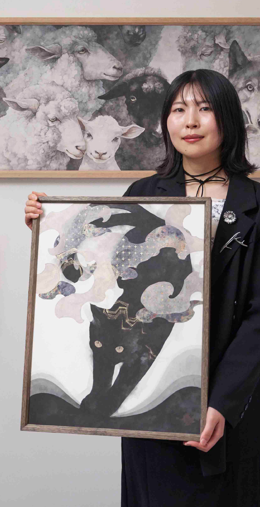 宮田が描くモチーフは、自分が大好きな動物がメイン。子どものころは、いつも身近に動物がいた。今回の作品「黒牛」は、祖父が飼っていた牛をイメージしている。「動物は表情がすごく豊かです。うちの犬もおやつをもらってうれしそうだったり、服を着せられるのが嫌いで困り顔になったりします。そんな表情を作品に表現しています」という。見る人が宮田の作品に感情移入できるのは、リアルな動物の表情に惹かれていくから。次の瞬間には、墨の表現の自由さにも気がつき、墨で描かれた動物が新鮮に見えてくる。「アートは日々の原動力になると思います。鑑賞する人の好奇心を刺激しますから。自分の作品から何か気づきを得てもらえればうれしいです」と、宮田は考えている。